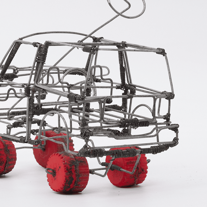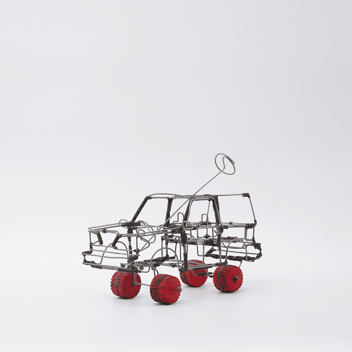 Created by Abraham, this handcrafted SUV wire car reflects the reliable all-rounders seen on local farms and streets of Philipstown. Bringing small-town spirit to any shelf or display.