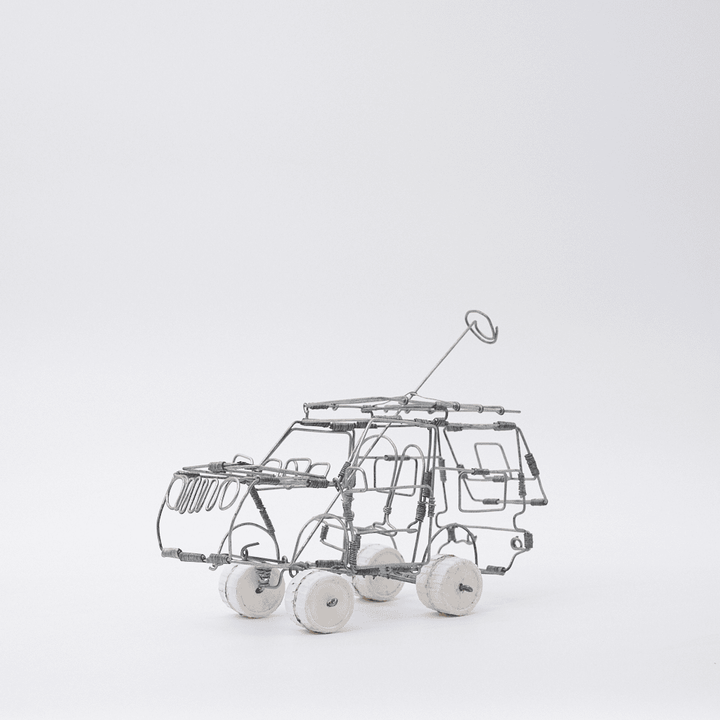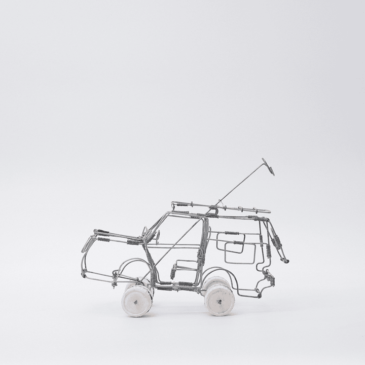 Created by Marius, this handcrafted SUV wire car reflects the reliable all-rounders seen on local farms and streets of Philipstown. Bringing small-town spirit to any shelf or display.