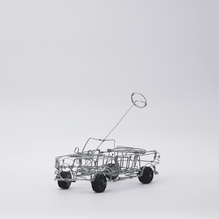 Handmade by Renate, this sedan wire car is inspired by the family cars seen on the streets of Philipstown. A small tribute to big memories, and the perfect addition to any display.
