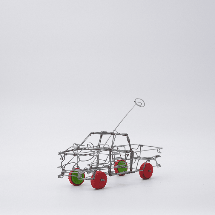 Handmade by Romeo, this pickup truck wire car is inspired by the sturdy workhorses seen around Philipstown, helping farmers and businesses move what matters most. A small display piece that tells a big story of community and hard work.