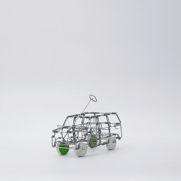 Created by Romeo, this handcrafted SUV wire car reflects the reliable all-rounders seen on local farms and streets of Philipstown. Bringing small-town spirit to any shelf or display.