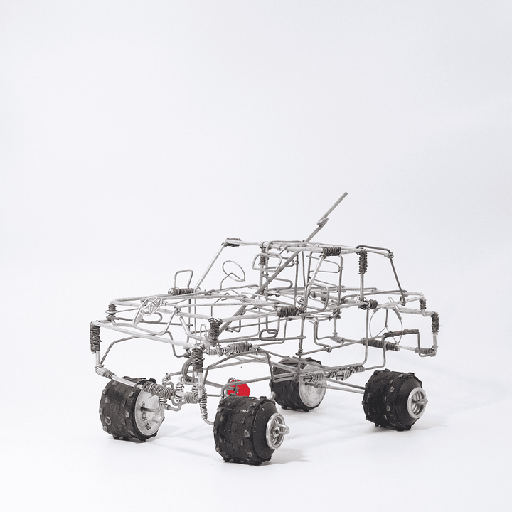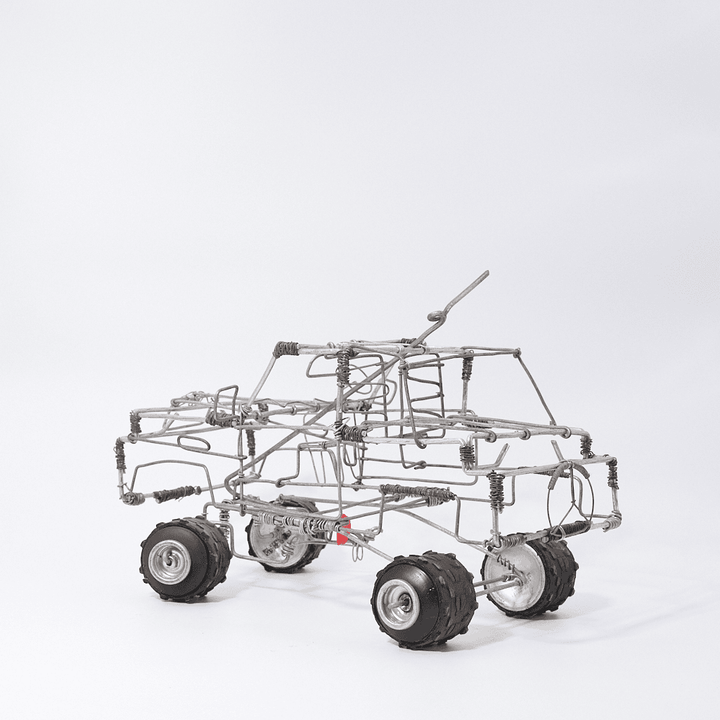 Built by Romeo, this handmade sedan wire car reflects the classic cars favoured by the people of Philipstown for family outings and trips into town. The wire car equivalent of a Sunday drive.