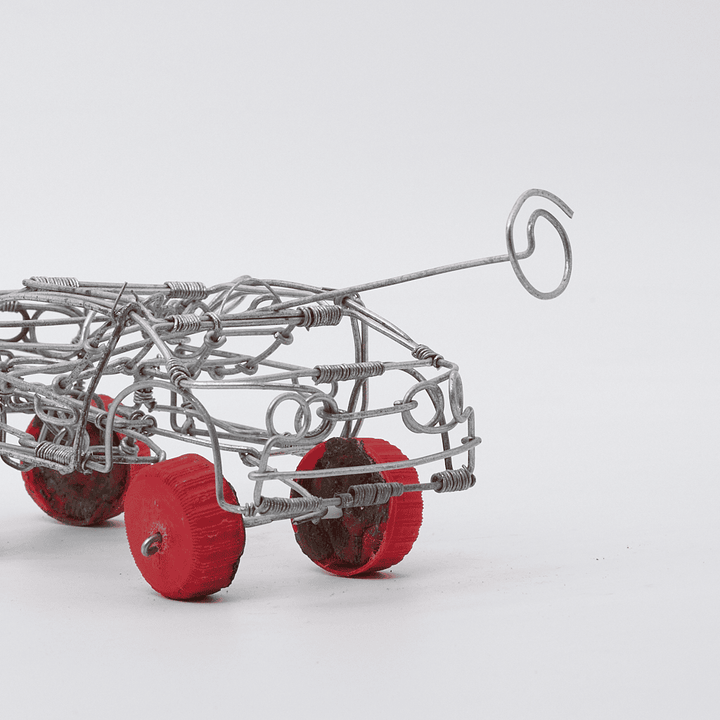 Handmade by Shaun, this sedan wire car is inspired by the family cars seen on the streets of Philipstown. A small tribute to big memories, and the perfect addition to any display.